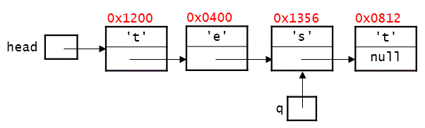 In addition, we have included two variables that each store a reference to one of the nodes in the linked list, along with the memory address of each node. You should assume that the