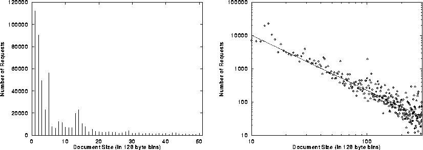 A primary goal of our study was to obtain a clear picture of the size distribution of the documents available on the web, of the requests made by users, and of the relationship between document size and popularity.