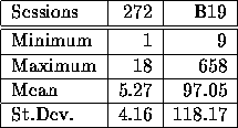 Table 1 shows summary statistics on the number of sessions in each room on a daily basis. The table reflects the fact that the larger number of workstations in B19 led to a much larger number of sessions per day in that room.