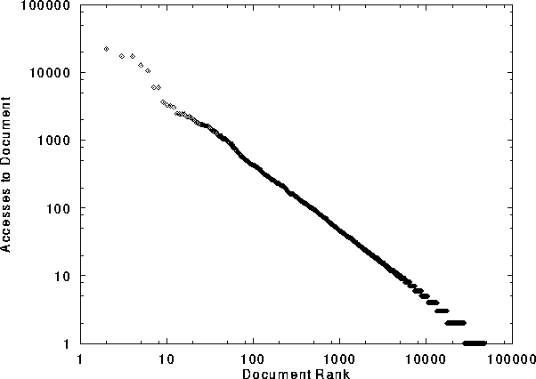 In summarizing our data, we have identified a number of trends and reference patterns in WWW use. In particular, we have shown that many characteristics of WWW use can be modeling using power-law distributions, including the distribution of document sizes, the popularity of documents as a function of size, the distribution of user requests for documents, and the number of references to documents as a function of their overall rank in popularity. In addition, we have shown that even high-level, distributional information about WWW use can be helpful in designing caching strategies for WWW documents.