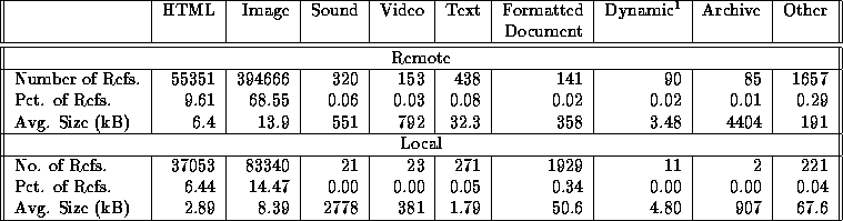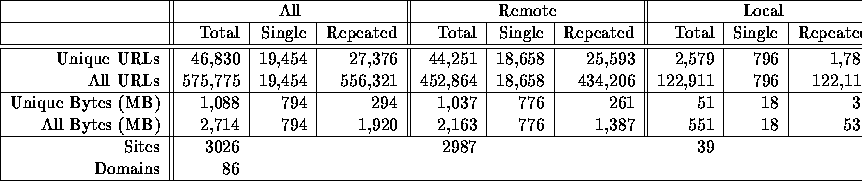 An important distinction is between those requests that went to servers outside the Boston University campus (Remote) and those requests that went to BU servers (Local). Table 4 summarizes requests based on that distinction.