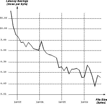1K bytes, is roughly linear. Thus we see that latency savings per byte
