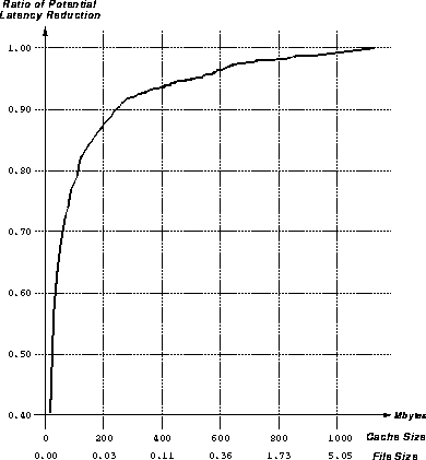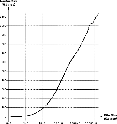 However, these curves do not reflect the cost of allocating resources for file caching. In particular, we would like to know how much space will be required, and what the expected benefit will be, if we adopt a policy of caching all files less than a certain size.